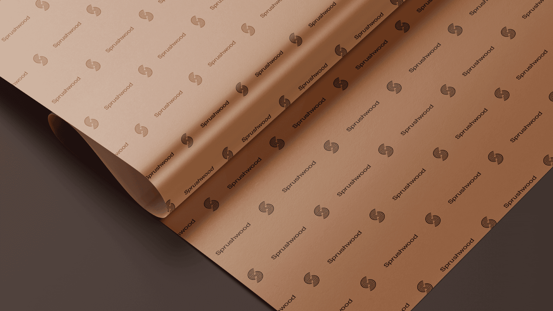 The logo is an abstract representation of a cross-section of a tree trunk, cleverly forming the ‘S’ of Sprushwood. Alongside the logo, a complete brand identity has been developed, including typography, colors, and professional guidelines for usage.